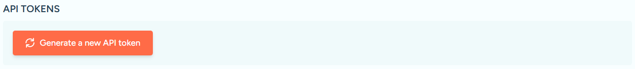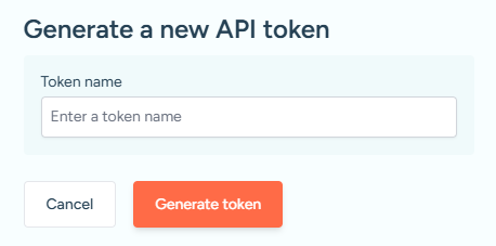 To create a token, click the Generate a new API token button. You will be prompted to provide a descriptive name for the token. Choose a name that clearly reflects its purpose, such as where it will be used (for example documentation, development or production).